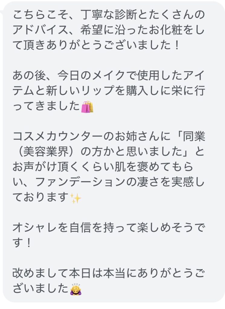 「こんなメイクがしたかった」と仰ってくださり、なりたい私に変わる瞬間でした✨
