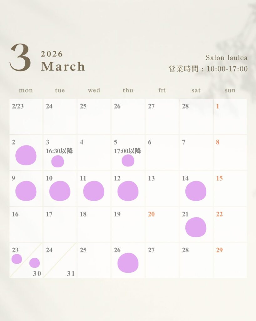 ▼ご案内可能日▼ 🟣の付いている日が可能です!ご希望の時間をお知らせください✨